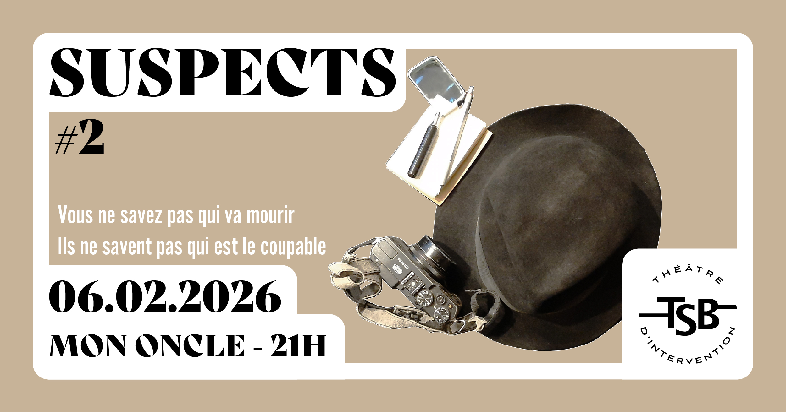 La première a été une très belle soirée alors on remet ça avec un Suspects #2, nouveau crime, nouveaux suspects, nouveau mystère !